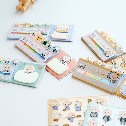 Nekoni แผ่นบันทึกรูปภาพน่ารักของพระภิกษุสงฆ์,แผ่นบันทึกกระดาษโน้ตติดเองดัชนีกระดาษที่คั่นหนังสือ DIY แผ่นกระดาษโน้ตกาวน่ารัก