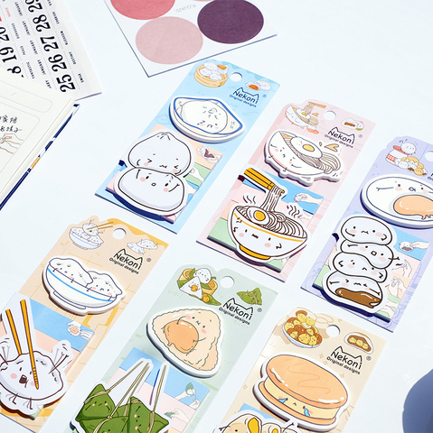 Nekoni กระดาษบันทึกย่อช่วยเตือนความจำแบบติดเองน่ารักกระดาษรูปภาพอาหารน่ารัก